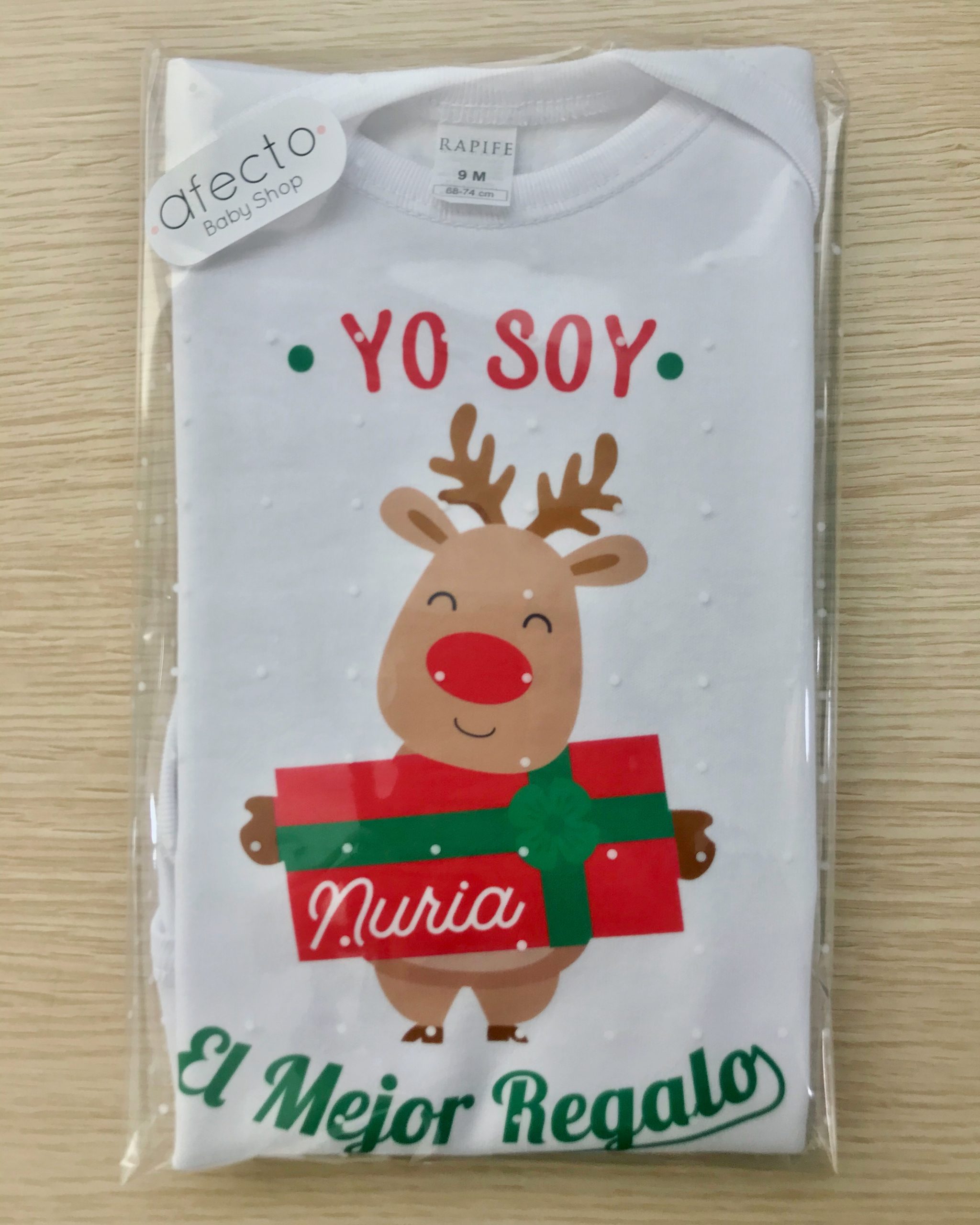 Body Navideño de Bebé Personalizado con su nombre. Textura muy suave. Fabricado en España con algodón peinado 100%.