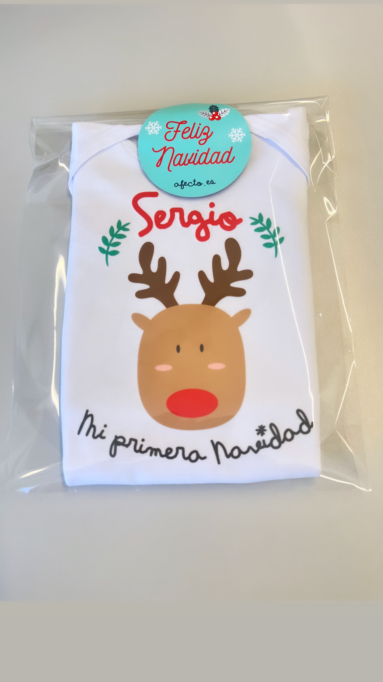 Body de Navidad Personalizado «Mi Primera Navidad» con un  diseño exclusivo de un dulce Reno®,