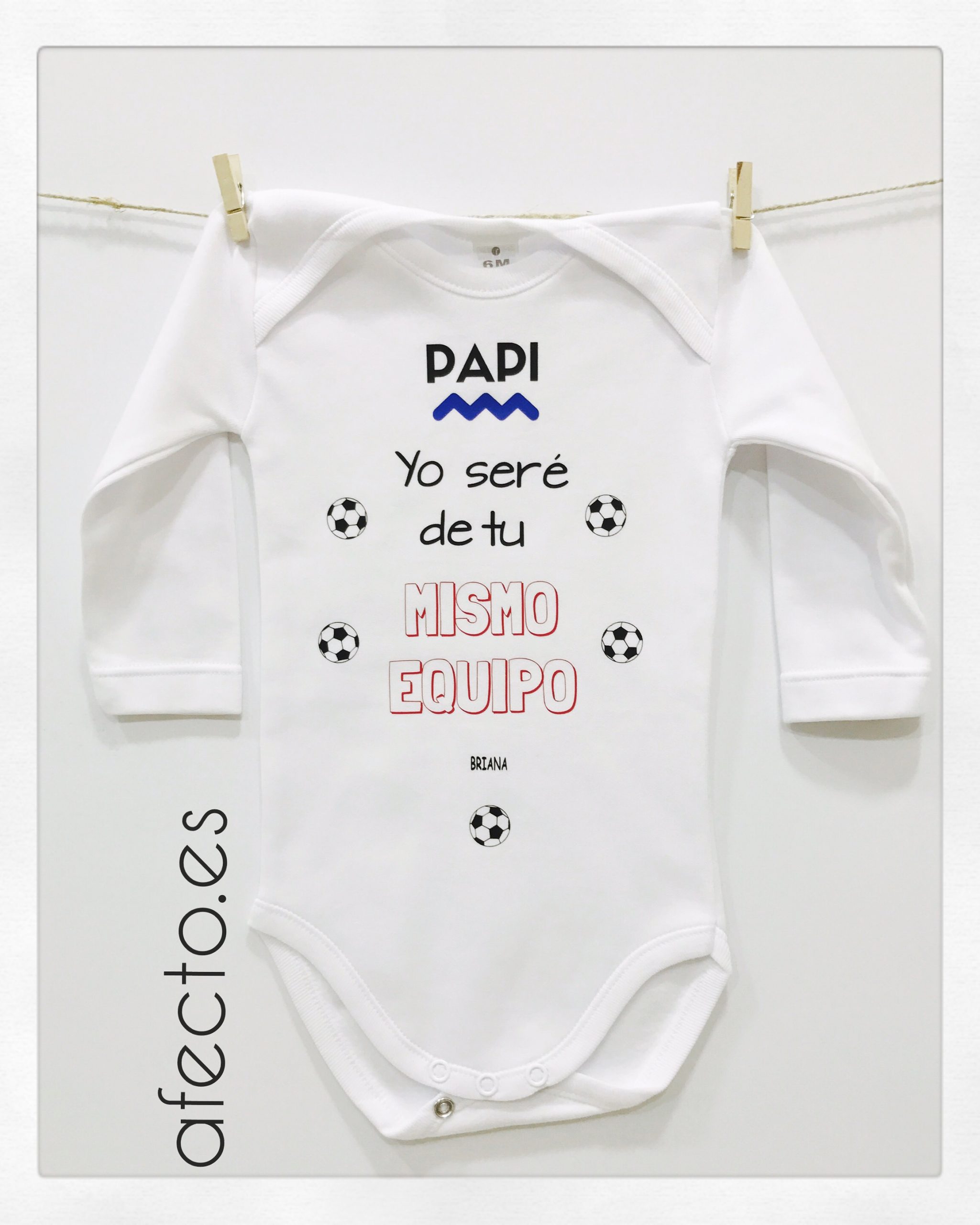 Body personalizado de tacto muy suave. «Papi yo seré de tu mismo equipo». También disponible en camiseta.