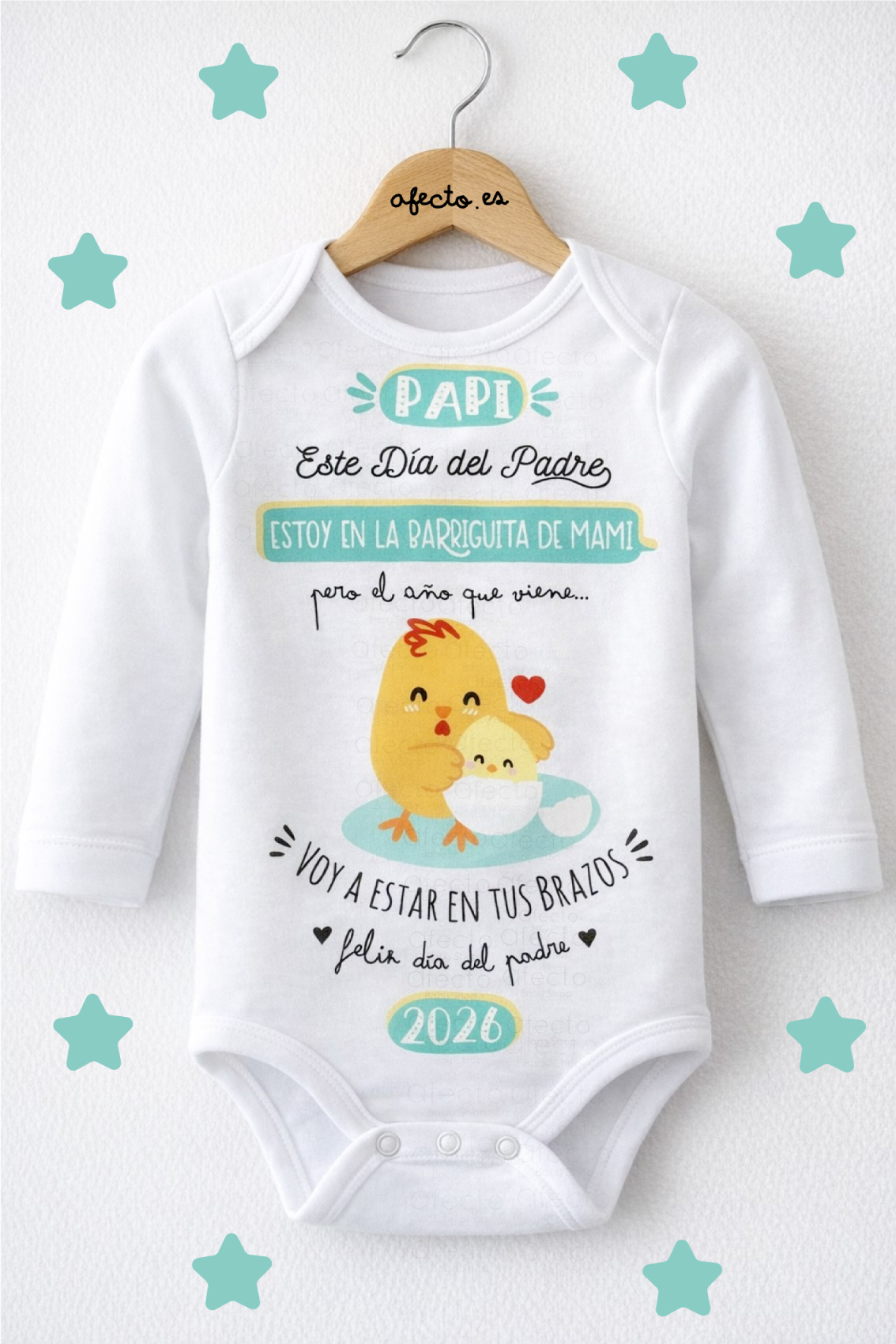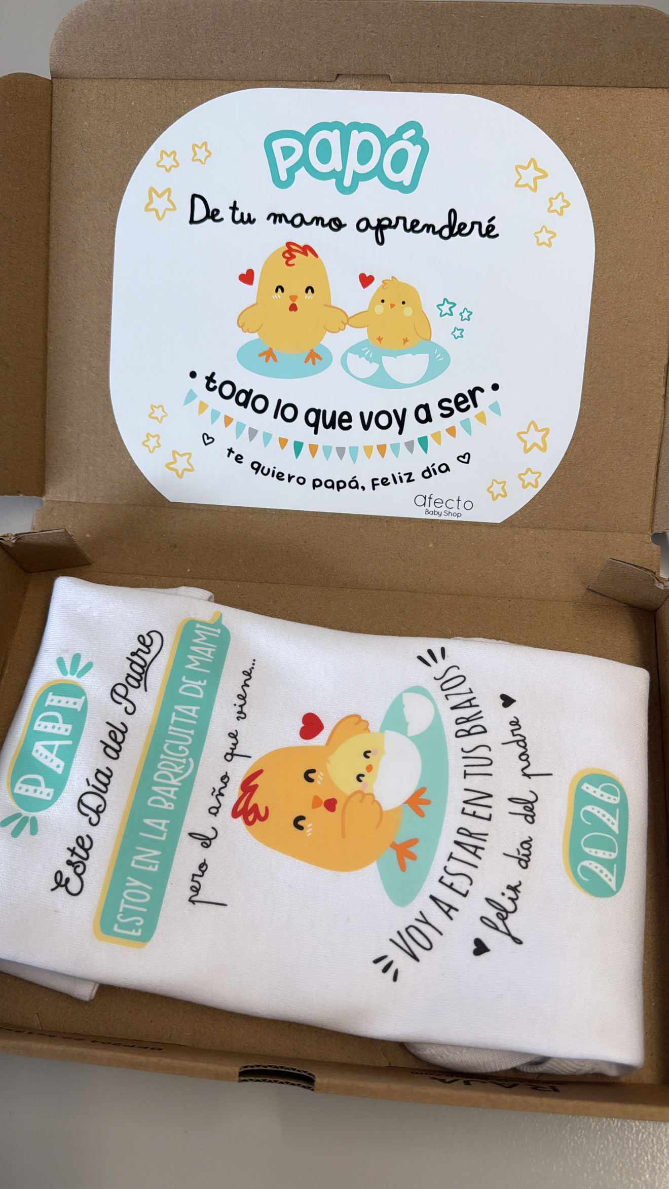 Body Día del Padre Embarazo 🐣 de textura suave, 100 % algodón, fabricado íntegramente en España. Disponible en manga larga, corta y tirantes. El Body va dentro de una cajita⭐️ con diseño especial para el Día del Padre.  Se emocionará muchísimo al abrirla! Diseño original registrado® por Afecto Baby Shop.  Imagen protegida por Derechos de Autor®