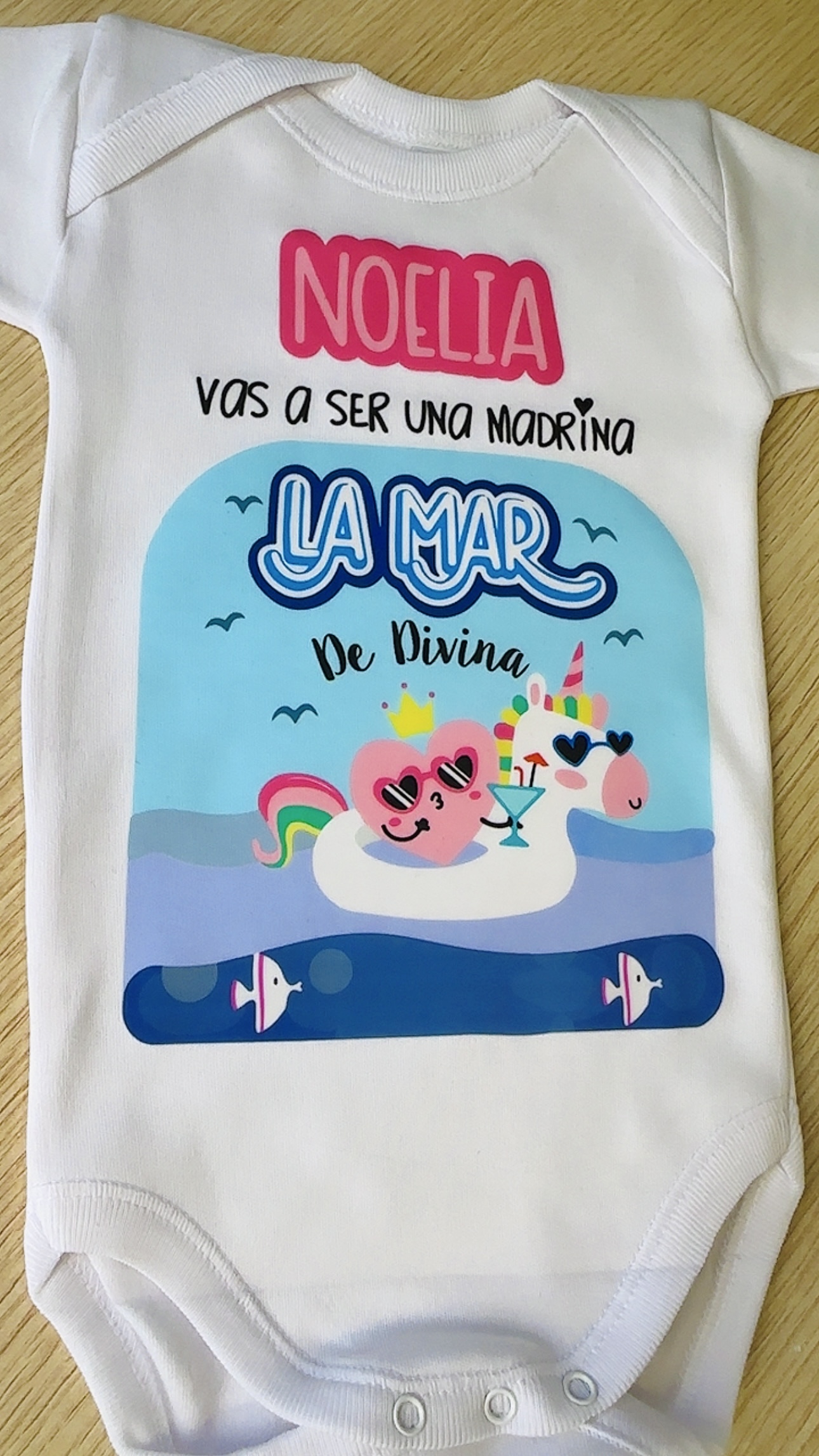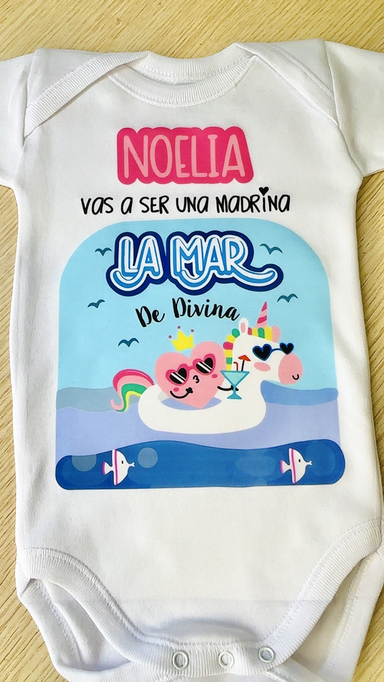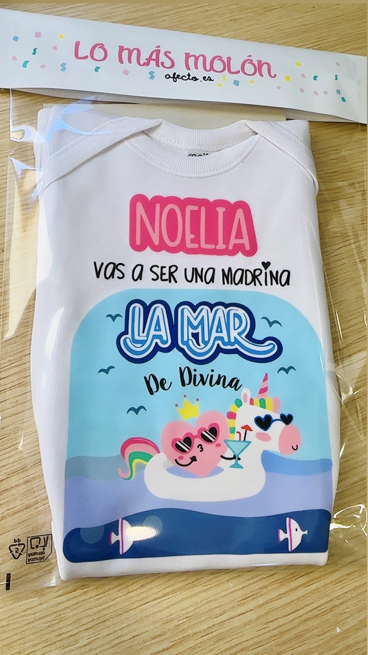 Dile que quieres que sea la madrina regalando este body con la frase «Vas a ser una Madrina la Mar de Divina».