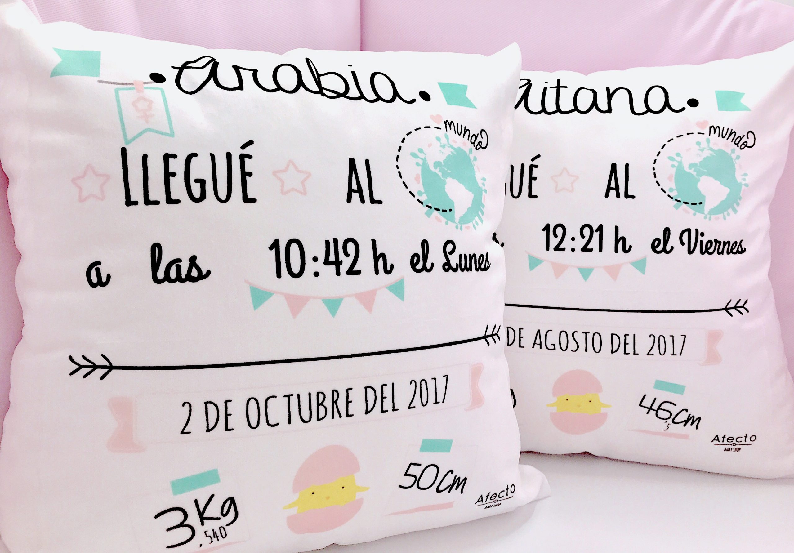 - Original Cojín de textura muy suave, similar a la de un peluche, con los datos de nacimiento del bebé.