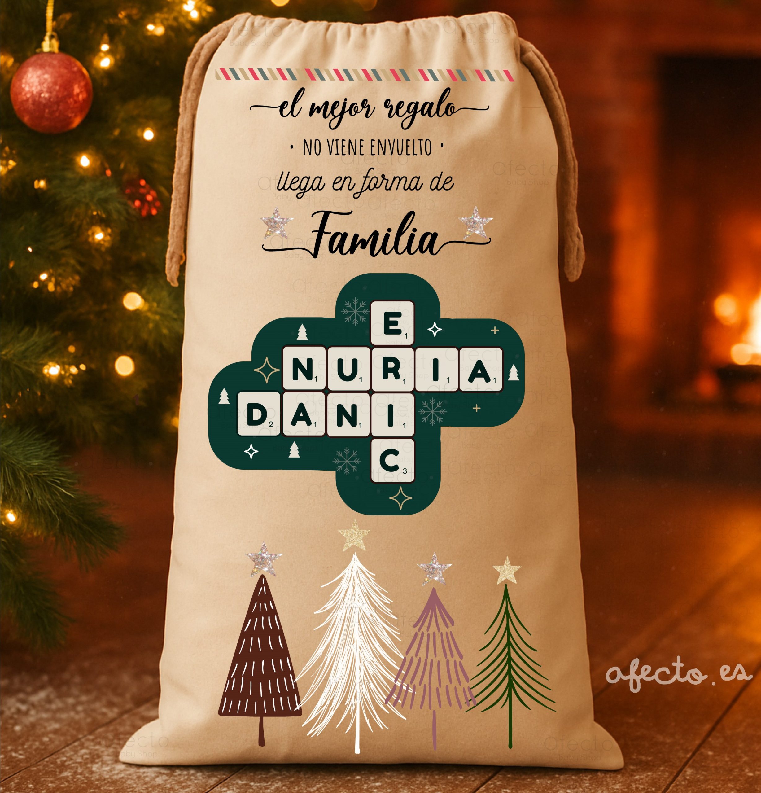- Personalizado con todos vuestros nombres formando un diseño de apalabrados. El diseño será enviado al cliente previamente por email en formato borrador para confirmar su posterior estampación.